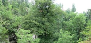 As we trod uphill, my attention was given solely to the lay of the land, and when I paused for a rest and to see what Tom was doing, he was nowhere to be seen. So, I waited and caught my breath and waited some more, and still he had not appeared. Rain was pouring down steadily, and even though it had let up some, I knew it would stifle any attempts to communicate our locations via whistles and shouts. I had to give it a shot, nonetheless, so I blasted three loud whistles. Nothing. Three more, and then another series followed by another. Nothing. Perhaps shouting would work best, so I gave my vocal cords a little exercise, and after shouting Tom’s name a couple or so times, I heard his response. Before long, he was within sight and made it clear he was ready to head straight for the top instead of continuing on along the rugged course we had been been traversing. I agreed it was probably best to head up the hill, but for me to do so, I had first to find an opening in the bluff that blocked my ascent.